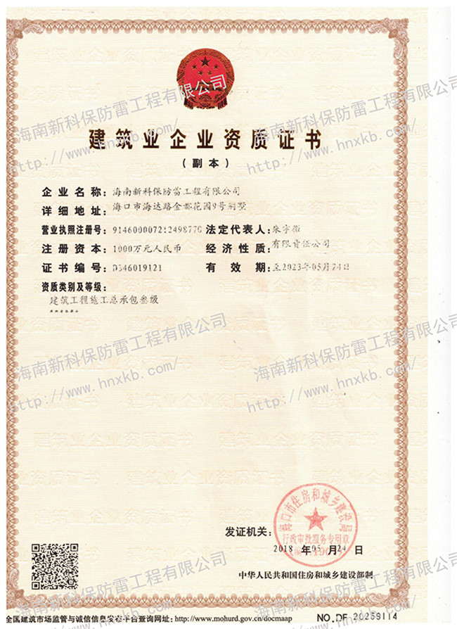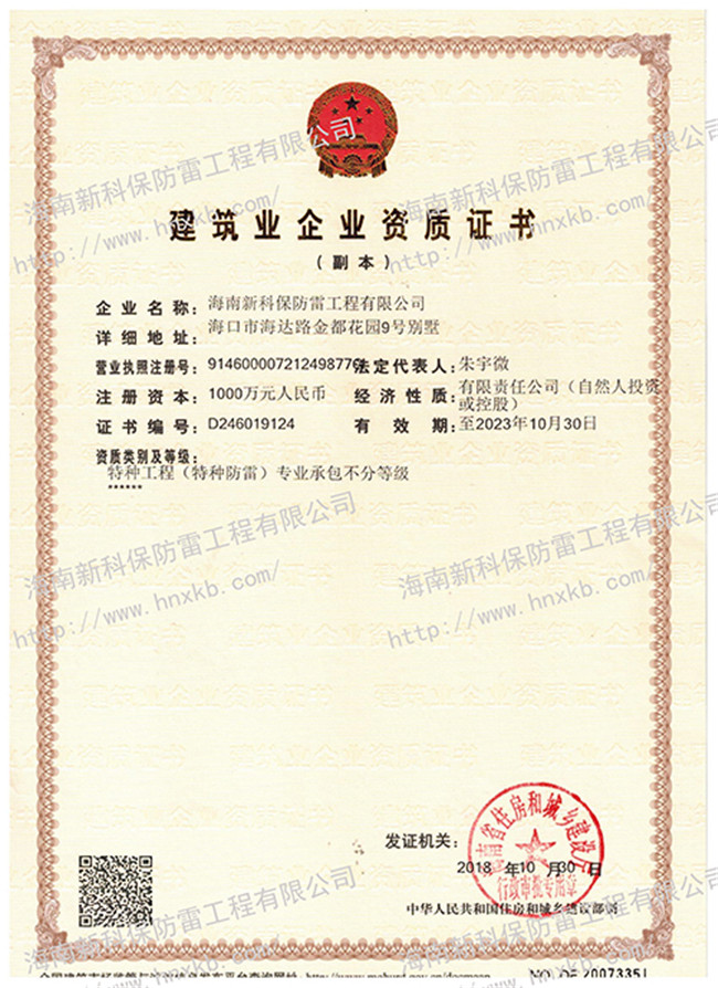 海南新科保防雷工程有限公司是一家集防雷技術(shù)研究、防雷檢測(cè)、防雷工程設(shè)計(jì)施工、安防監(jiān)控工程設(shè)計(jì)施工、建筑智能化施工、建筑水電施工于一體的高科技公司。在相關(guān)主管部門監(jiān)管下,致力于為客戶提供專業(yè)的安全防護(hù)、建筑智能化、水電技術(shù)等優(yōu)質(zhì)產(chǎn)品和工程服務(wù)。